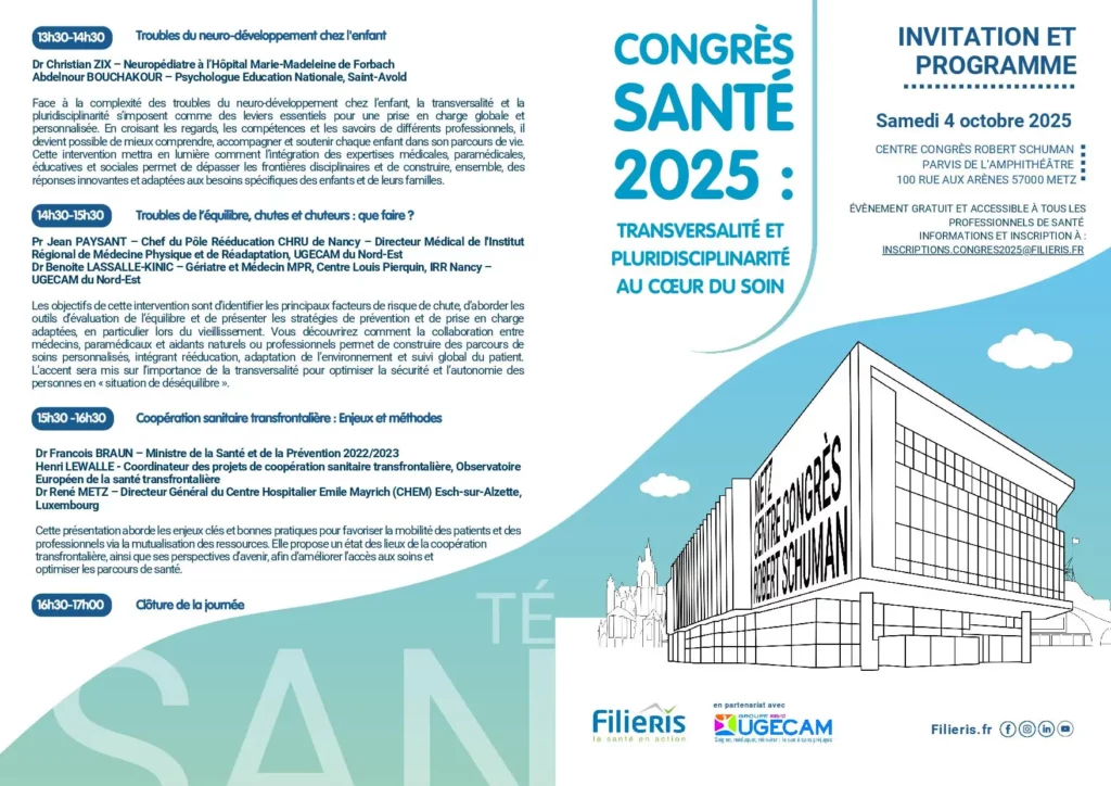 Le 4 octobre 2025, au centre Robert Schuman de Metz, l’édition 2025 de notre congrès accueillera une table ronde passionnante autour du thème de la coopération sanitaire transfrontalière.